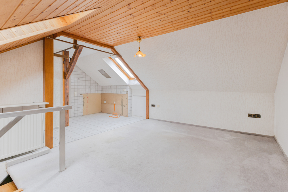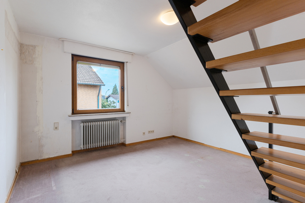 Über die halb gewendelte Buchenholztreppe in der Diele führt der Weg in das Obergeschoss. Drei gut geschnittene Zimmer, davon eines mit angrenzendem Balkon, stehen Ihnen hier oben für Ihre individuelle Nutzung zur Verfügung. Ein Bad mit Badewanne und Dusche komplettiert das Raumangebot auf dieser Etage. Sie benötigen etwas mehr Platz? Gerne. Eine stabile Treppe führt von einem der Zimmer hier oben, in einen bereits wohnlich ausgebauten Bereich im Dachgeschoss.