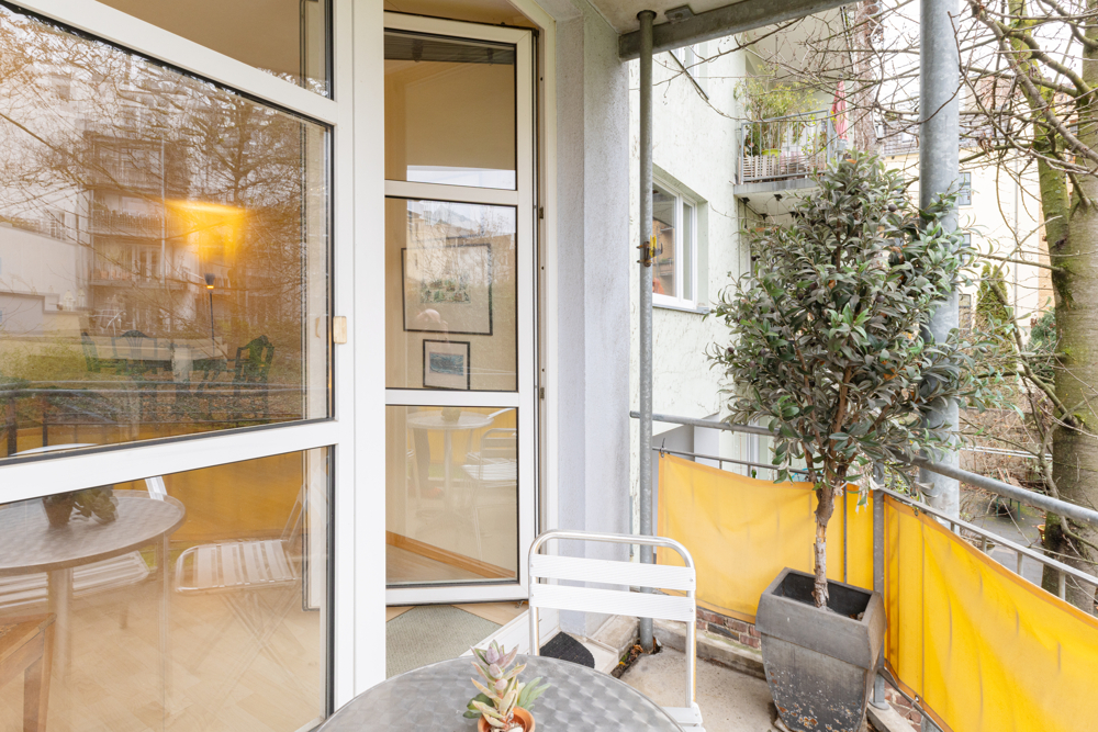 Ein weiteres Highlight dieser Wohnung ist der eigene Balkon zum ruhigen Hof hin ausgerichtet, der Ihnen einen herrlichen Rückzugsort im Freien bietet – perfekt, um die Sonne zu genießen oder den Abend bei einem Glas Wein ausklingen zu lassen.
