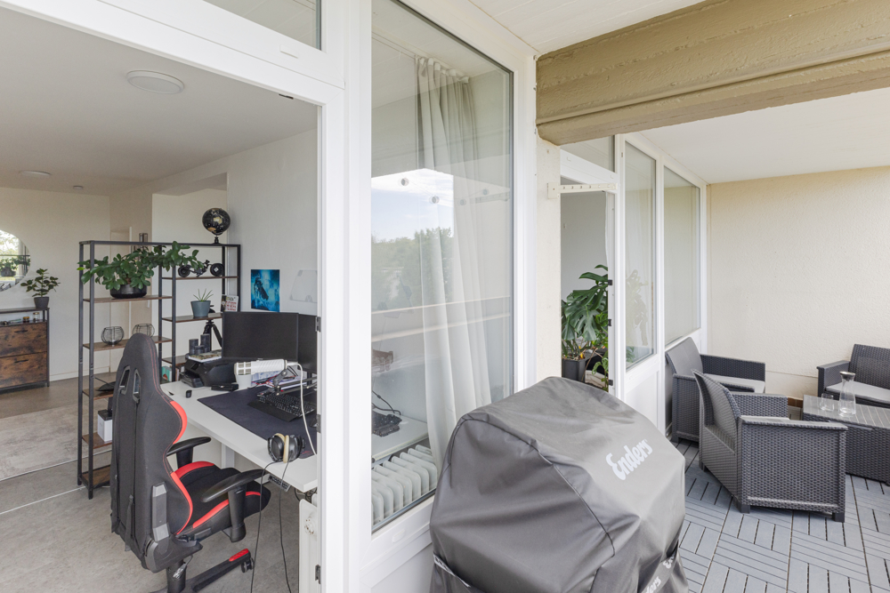 Auf dem gemütlichen und überdachten, nach Süden ausgerichteten Balkon können Sie den Tag entspannt ausklingen lassen.