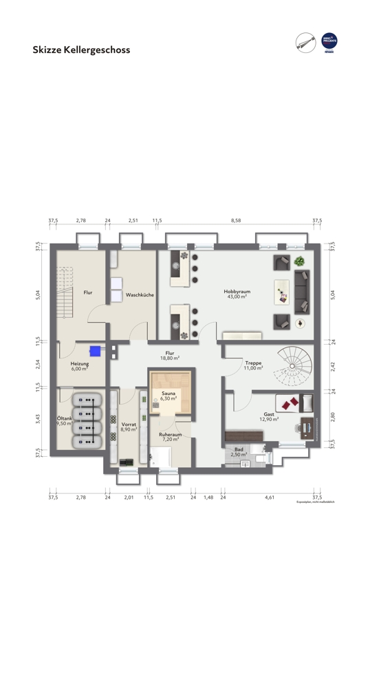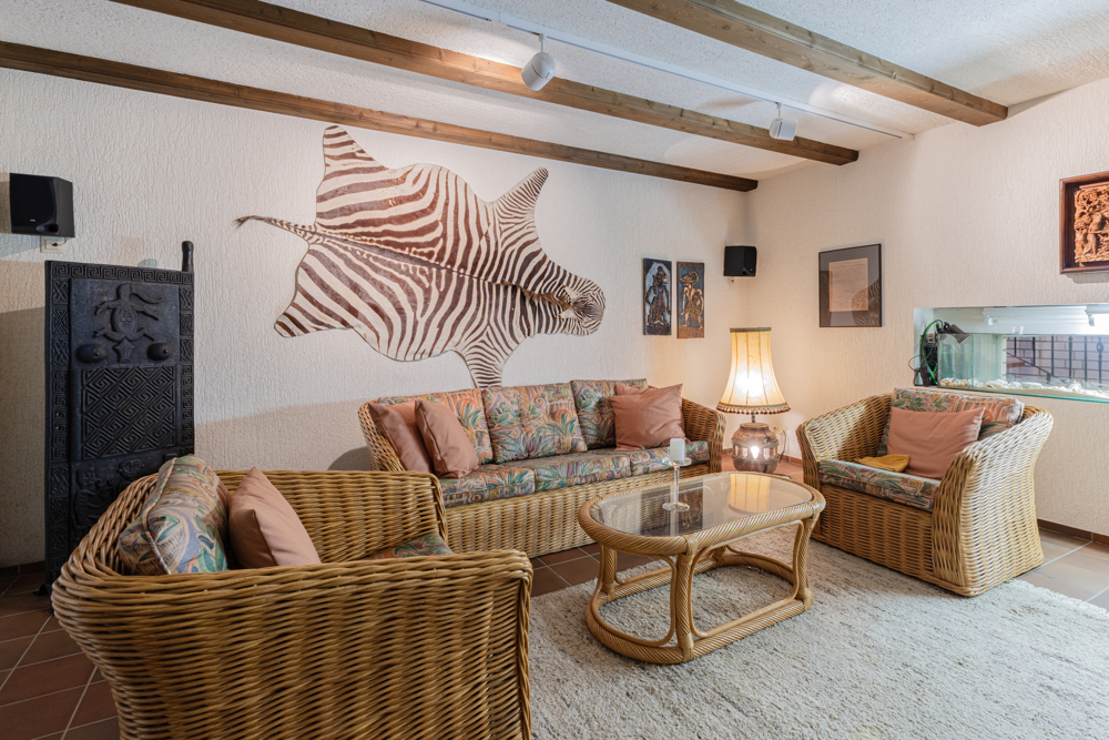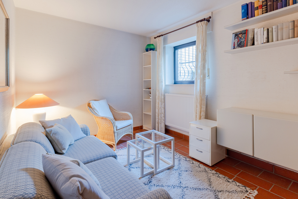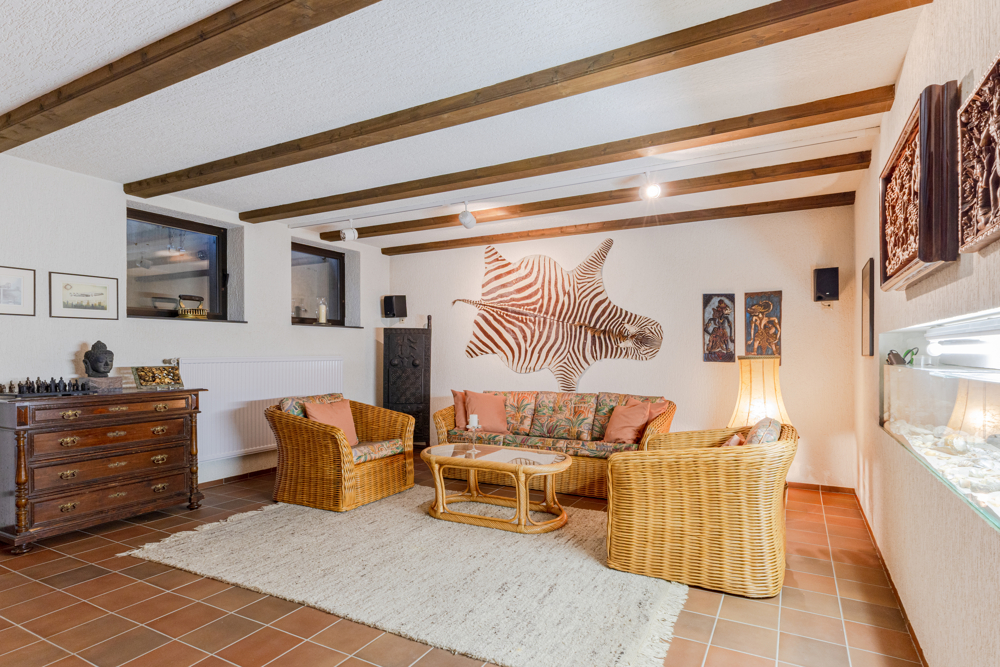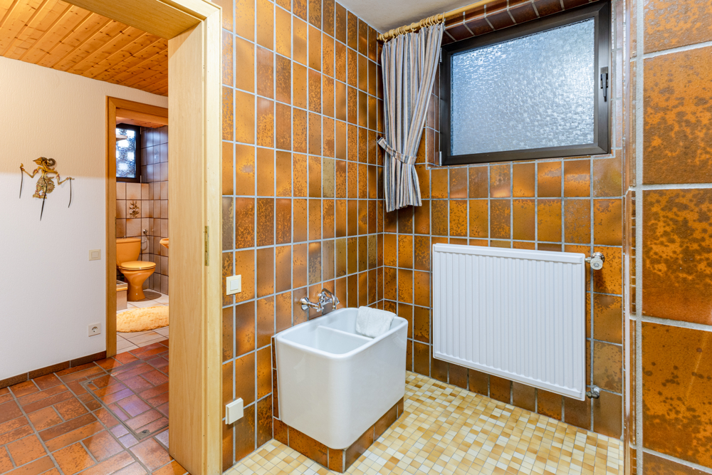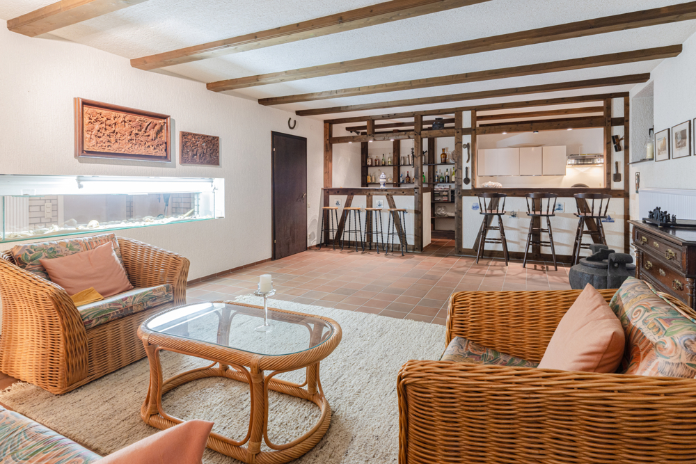Das Haus ist vollständig unterkellert und bietet eine Reihe zusätzlicher Räume: eine wohltuende Sauna mit Dusche und separater Toilette zur Erholung, einen Hobbyraum mit Bar für gesellige Abende, eine praktische Waschküche sowie einen Heizkeller.