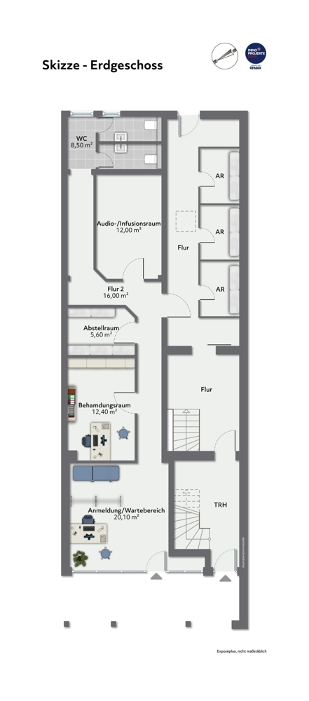 Erdgeschoss: Gewerbeeinheit mit ca. 80 m² Gewerbefläche