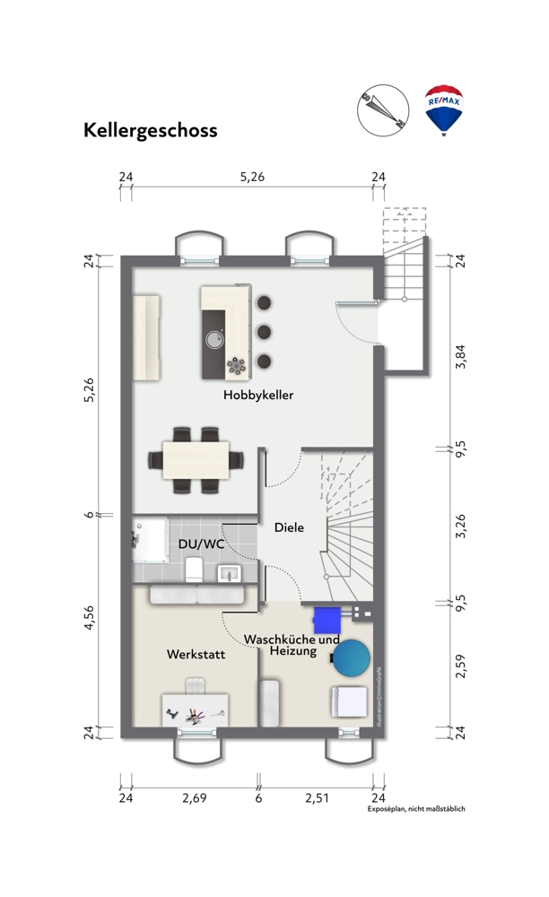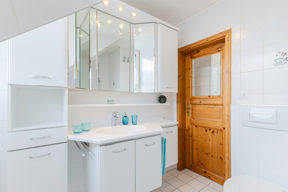 Praktisch für den Familienalltag: Der vollunterkellerte Bereich bietet reichlich Platz für Vorräte, Hobbys oder eine kleine Werkstatt. Und in der Garage mit direktem Durchgang zum Garten lassen sich Kinderwagen, Fahrräder oder Einkäufe ganz unkompliziert unterbringen.