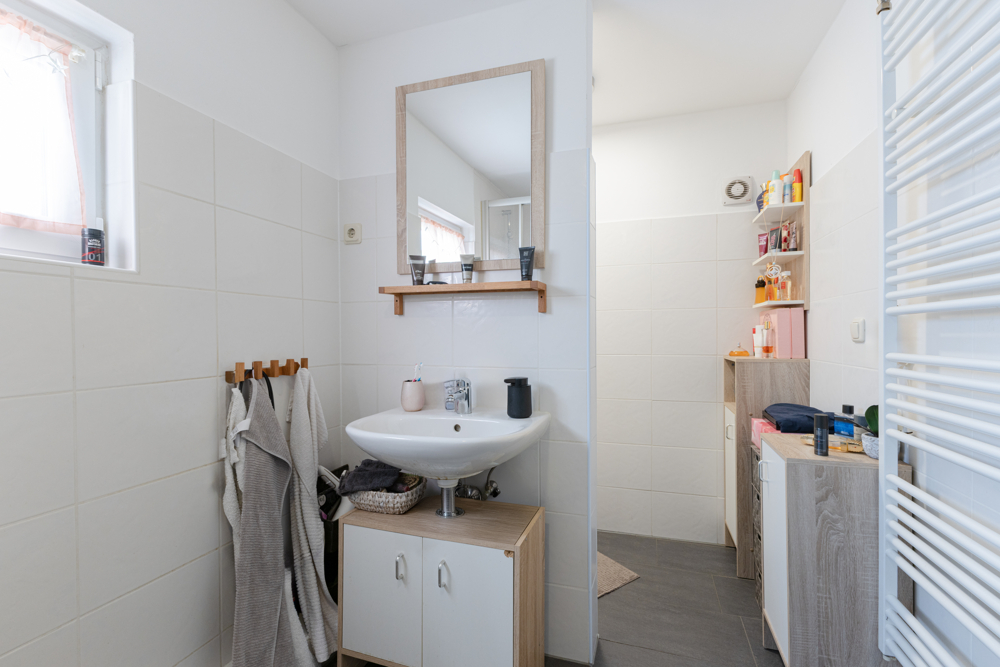 Im Obergeschoss erwarten Sie ein Schlafzimmer sowie ein weiteres Zimmer, von dem aus Sie sowohl das Gäste-WC als auch die kleine Dachterrasse erreichen. Der Gewölbekeller bietet praktischen Stauraum für Vorräte, während ein zusätzlicher Dachboden und ein Schuppen, der vom Innenhof aus zugänglich ist, weitere Abstellmöglichkeiten bieten.