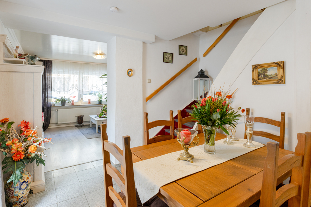 Durch ein Tor betreten Sie den einladenden Innenhof, den die aktuellen Mieter als kleine Wohlfühloase gestaltet haben. Beim Betreten des Hauses gelangen Sie in den offenen Wohn- und Essbereich, an den sich die Küche sowie ein Duschbad anschließen.