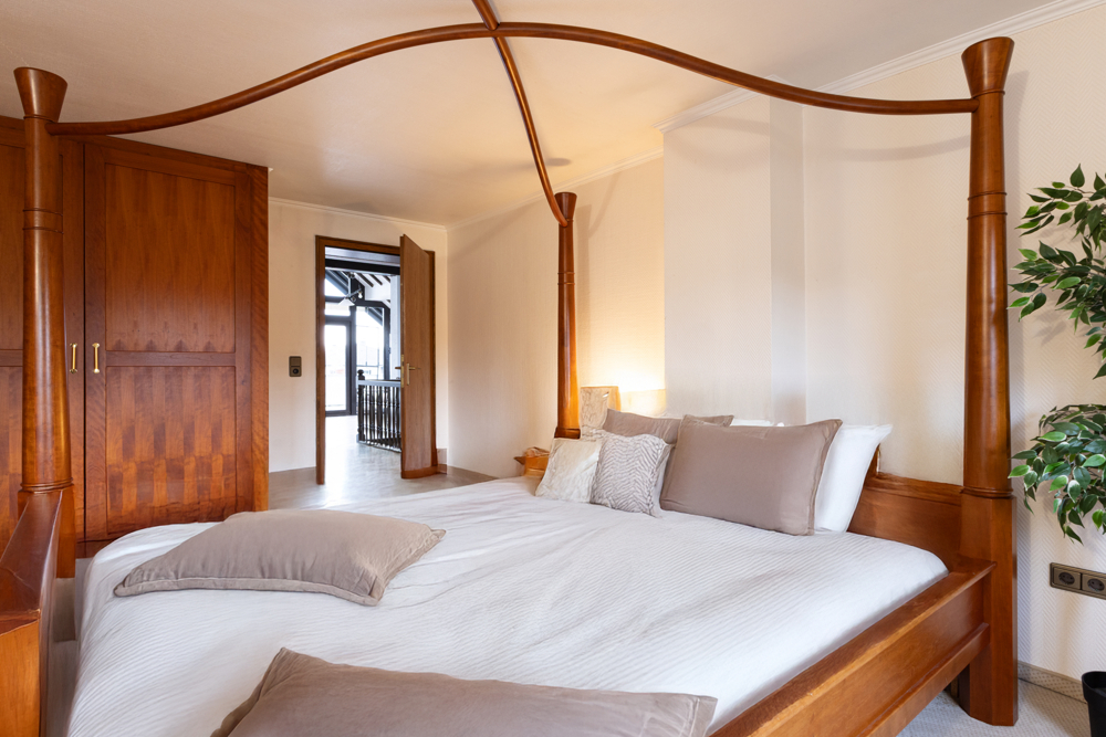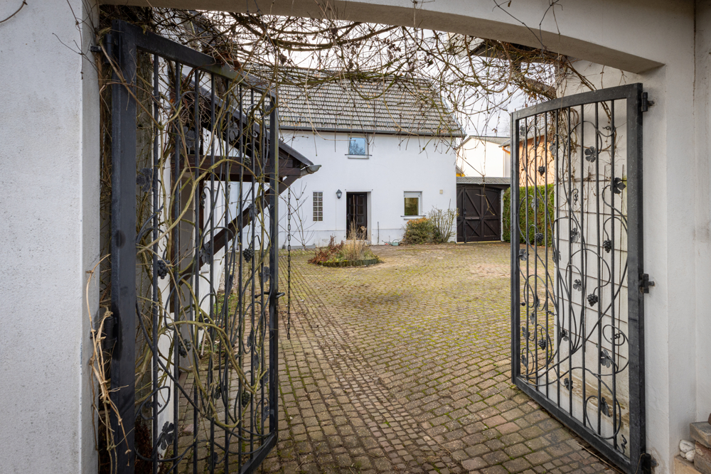 Auf rund 300 m² Wohnfläche erwartet Sie eine großzügige Raumaufteilung, die vielfältige Nutzungsmöglichkeiten bietet. Durch ein charmantes Holztor gelangen Sie in den geschützten Innenhof der Immobilie. Von hier aus führen zwei separate Eingänge ins Haus.