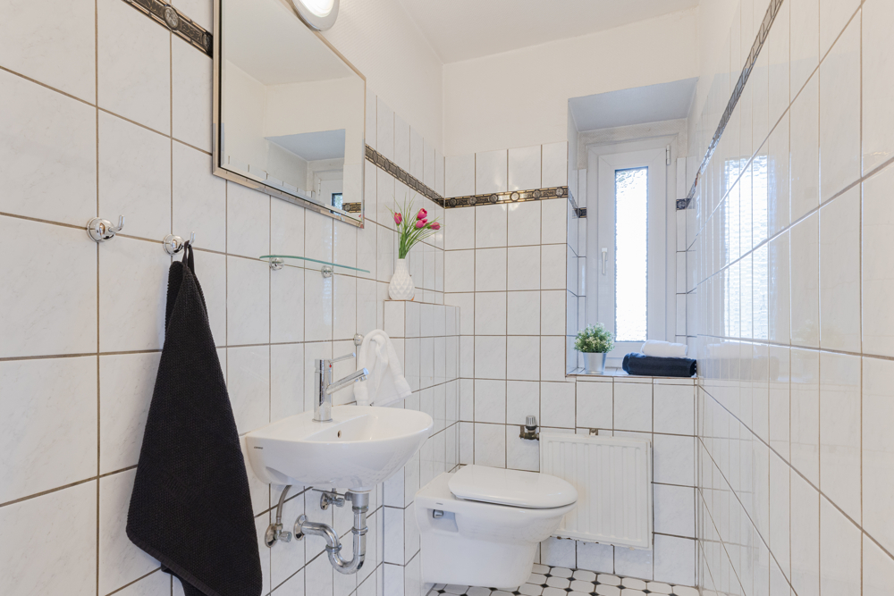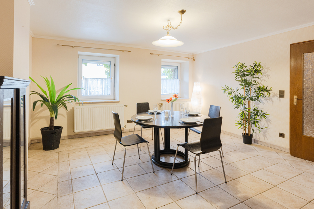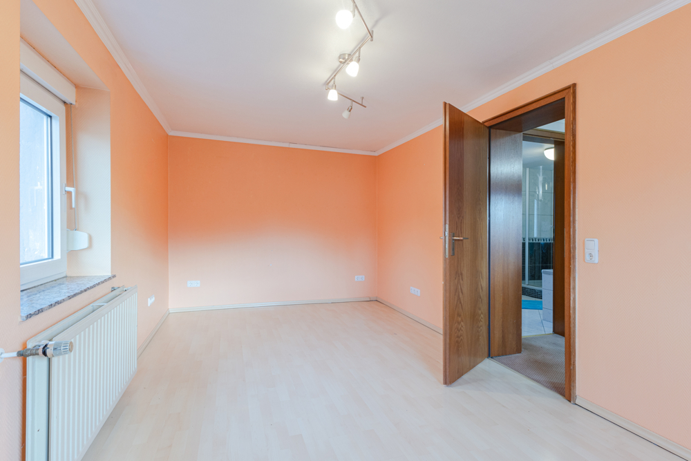 Im Erdgeschoss befinden sich die geräumige Küche, ein Wohn-/ Esszimmer, ein Gäste-WC sowie ein Schlafzimmer. Zusätzlich liegt hier ein Duschbad, das nach einem Rohrbruch noch nicht wiederhergestellt wurde, eine ideale Gelegenheit für eine moderne Neugestaltung. Ergänzt wird diese Ebene durch drei kleinere Räume, die derzeit als Heizungsraum, Abstellfläche und Waschküche genutzt werden. Ein weiteres Zimmer, vom Innenhof aus zugänglich, diente zuletzt als Büro – perfekt für Selbstständige, die Wohnen und Arbeiten trennen möchten!
