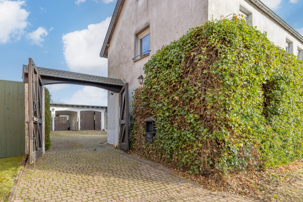 Der Innenhof hält gleich 2 Carports, weitere Parkmöglichkeiten und eine kleine Werkstatt bereit. Zwischen Haus und Carports führt ein Zugang in den weitläufigen Garten, der darauf wartet, nach Ihren Vorstellungen gestaltet zu werden. Ergänzt wird der Außenbereich durch ein vorhandenes Gartenhaus, das zusätzlichen Stauraum bietet.