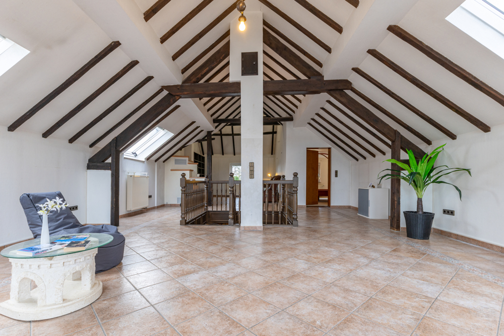 Durch die zwei Hauseingänge und die beiden Treppenhäuser bietet das Gebäude eine hervorragende Voraussetzung für ein Ein- oder Zweifamilienhaus. Im Obergeschoss wurde ein großzügiger Anbau geschaffen, der das Herzstück der Immobilie bildet: ein lichtdurchflutetes Studio mit Kaminecke und großer Fensterfront, die Zugang zum Balkon ermöglicht. Ergänzend stehen auf dieser Etage zwei weitere Zimmer sowie ein Bad mit Waschtisch, Badewanne und Dusche zur Verfügung. Über eine Raumspartreppe gelangen Sie vom ersten Obergeschoss ins Dachgeschoss, das ebenso wie der Keller zusätzliche Abstellfläche bietet.