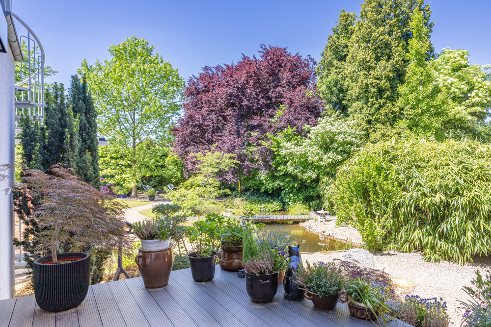 Als besonderes Highlight rundet eine herrliche Gartenanlage das Angebot dieses Objektes ab. Großzügige Rasenflächen, eingerahmt von einem beeindruckenden Farbenspiel unterschiedlicher Gehölze und abwechslungsreicher Bepflanzung schaffen die wundervolle Atmosphäre eines privaten Parks. Verschiedene gemütliche Plätze laden zum Lesen, Plaudern oder Sonnenbaden ein. Ob unter schattenspendenden Bäumen oder am idyllisch plätschernden Teich – hier finden Sie immer den perfekten Ort für Ihre Auszeit. Eine Immobilie wie diese könnte genau das Richtige für Sie sein? Dann freuen wir uns auf Ihre Kontaktaufnahme.