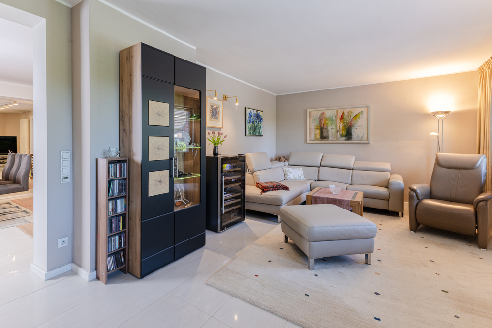 Ausgestattet mit einer hocheffizienten Wärmepumpe in Kombination mit Solarthermie sorgt das Haus für erfreulich niedrige Energiekosten und orientiert sich an nachhaltigem Wohnen.