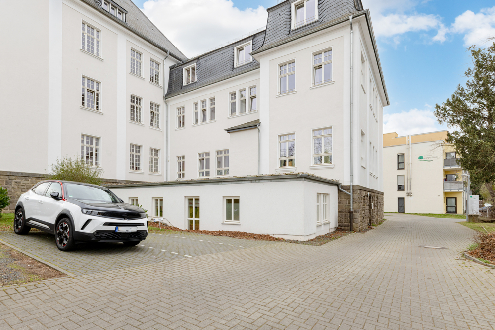 Hinter dem Gebäude stehen drei Außenstellplätze zur Verfügung, die der Einheit zugeordnet sind.