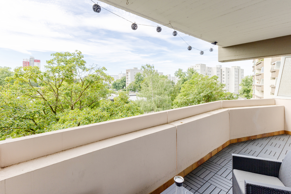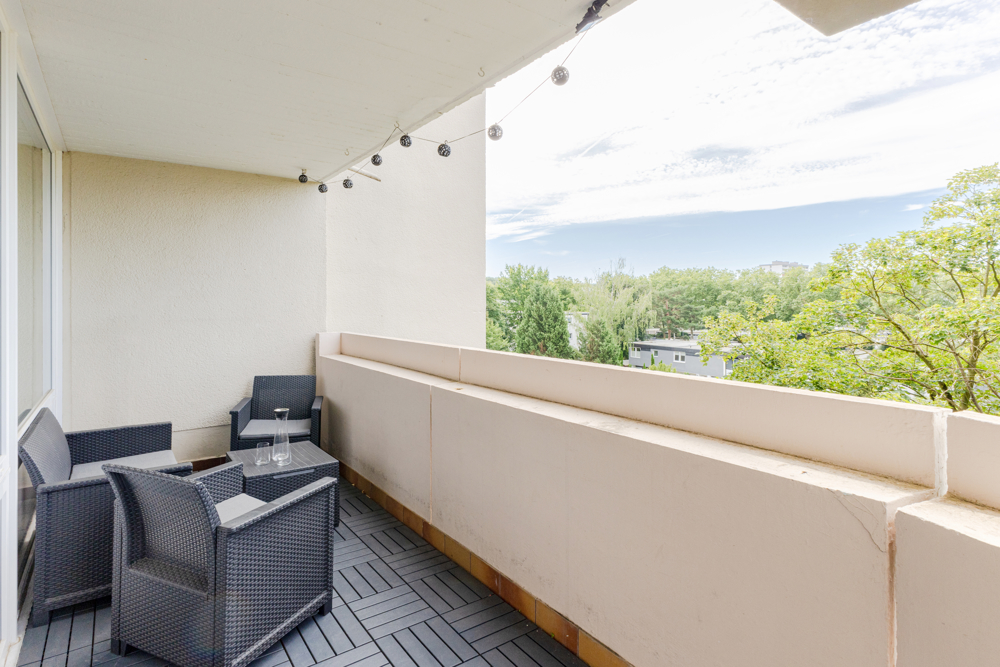 Auf dem gemütlichen und überdachten, nach Süden ausgerichteten Balkon können Sie den Tag entspannt ausklingen lassen.