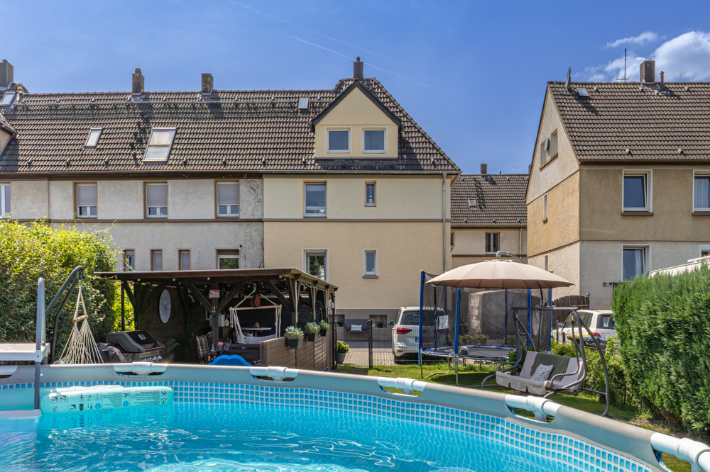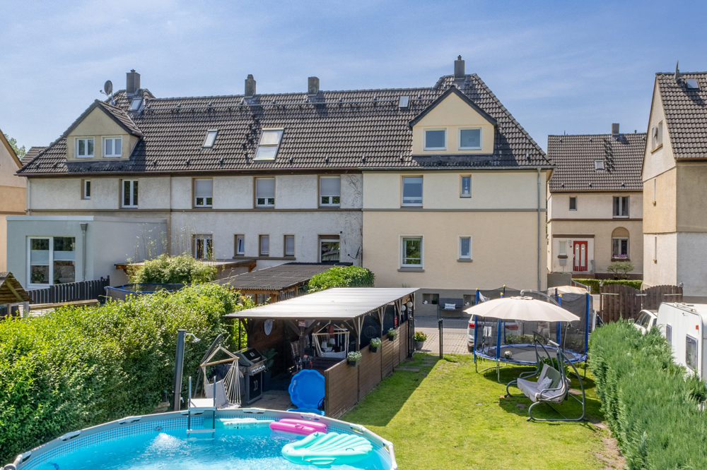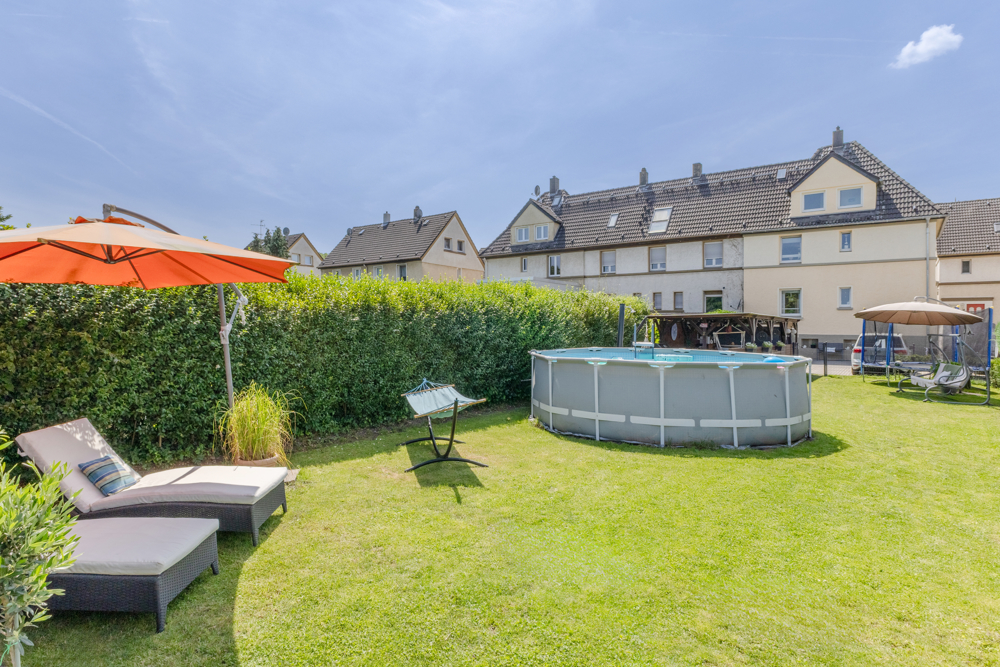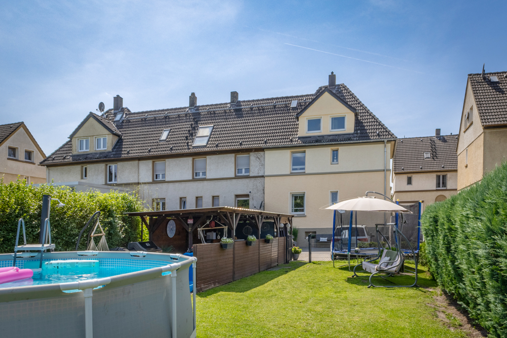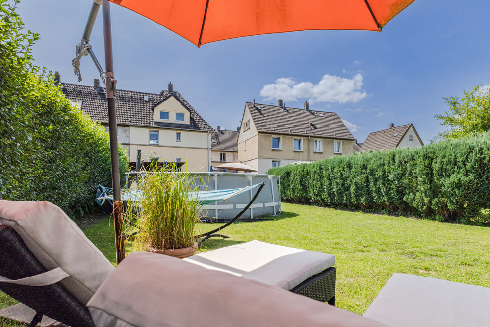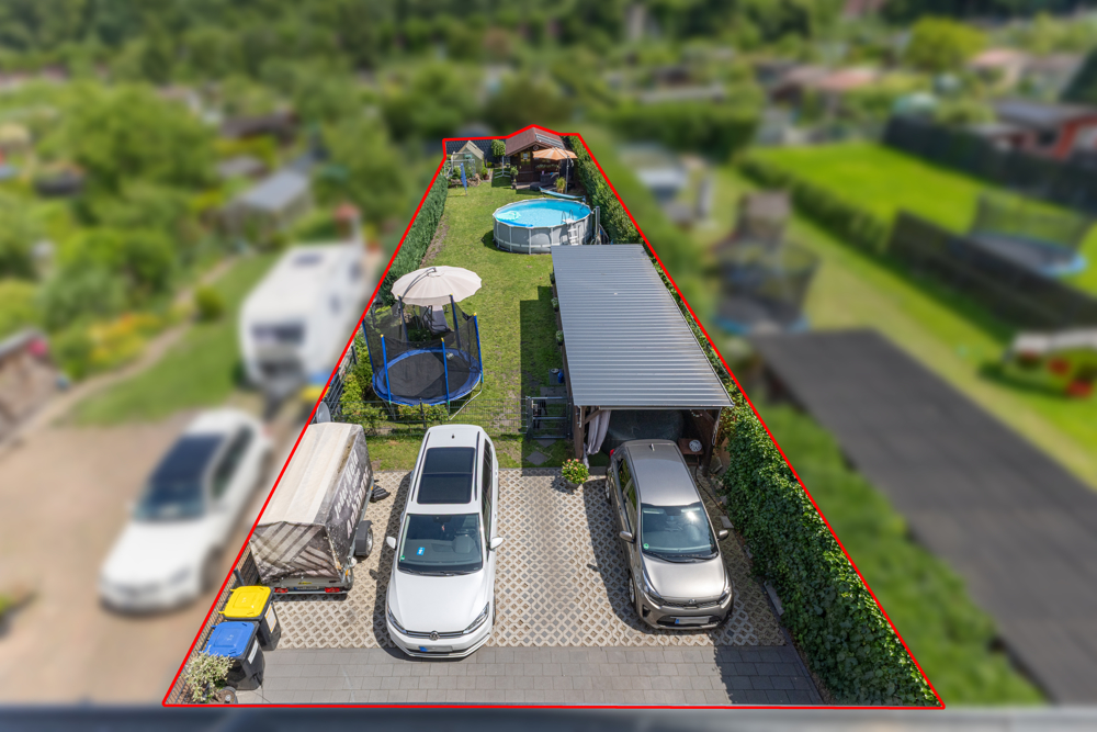 Das beeindruckende Grundstück von 492 m² lädt zur Entspannung im Freien ein und bietet vielseitige Gestaltungsmöglichkeiten für Gartenliebhaber. Hier können Sie Ihre eigene Oase der Ruhe schaffen oder gesellige Stunden im Freien genießen.