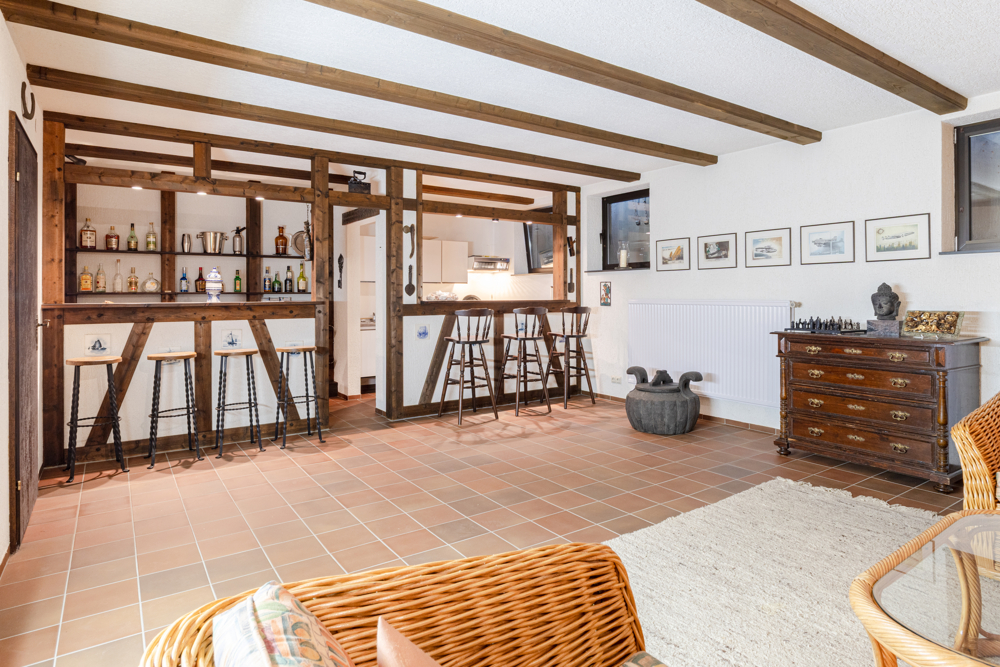 Das Haus ist vollständig unterkellert und bietet eine Reihe zusätzlicher Räume: eine wohltuende Sauna mit Dusche und separater Toilette zur Erholung, einen Hobbyraum mit Bar für gesellige Abende, eine praktische Waschküche sowie einen Heizkeller.