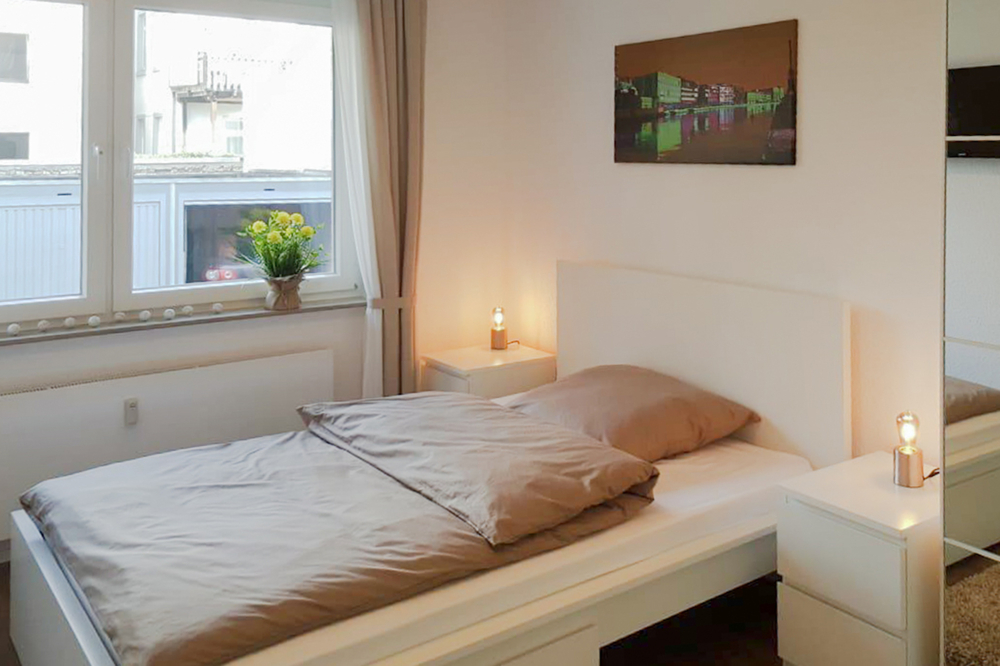 Zu Fuß in die Innenstadt: ca. 12–20 Minuten, je nach Wohnlage innerhalb Mauritz. Der typischer Weg führt durch belebte Straßen mit kurzen Querungen über bequeme Bürgersteige.